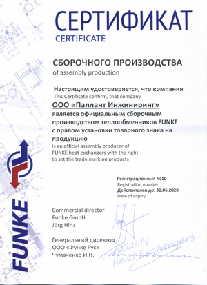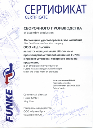 ООО «Цельсий» является сертифицированным сборочным производством по изготовлению пластинчатых теплообменников FUNKE в г. Иркутск