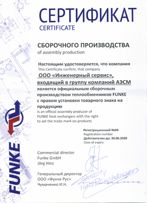 ООО "Инженерный сервис" является сертифицированным сборочным производством по изготовлению пластинчатых теплообменников FUNKE в г. Екатеринбург