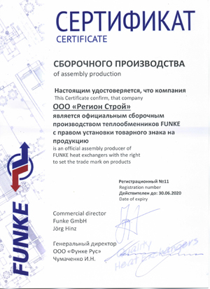ООО «Функе-Челябинск» является официальным партнером ООО «Функе Рус» по сборке пластинчатых теплообменников совместно с компанией ООО «Регион-строй», поставляющей на Российский рынок пластинчатые теплообменники.