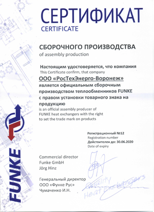 ООО "РосТехЭнерго-Воронеж" является официальным сборочным производством FUNKE