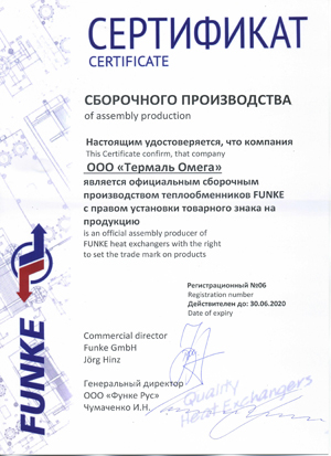 ООО «Термаль Омега» с 2004 года занимается выпуском разборных пластинчатых теплообменников и является официальным сборочным производством компании ООО «Функе-Рус»