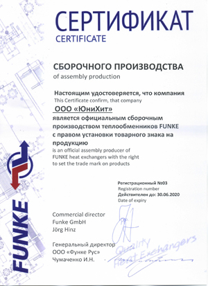 ООО "ЮниХит" является официальным сборочным производством ООО "Функе Рус"