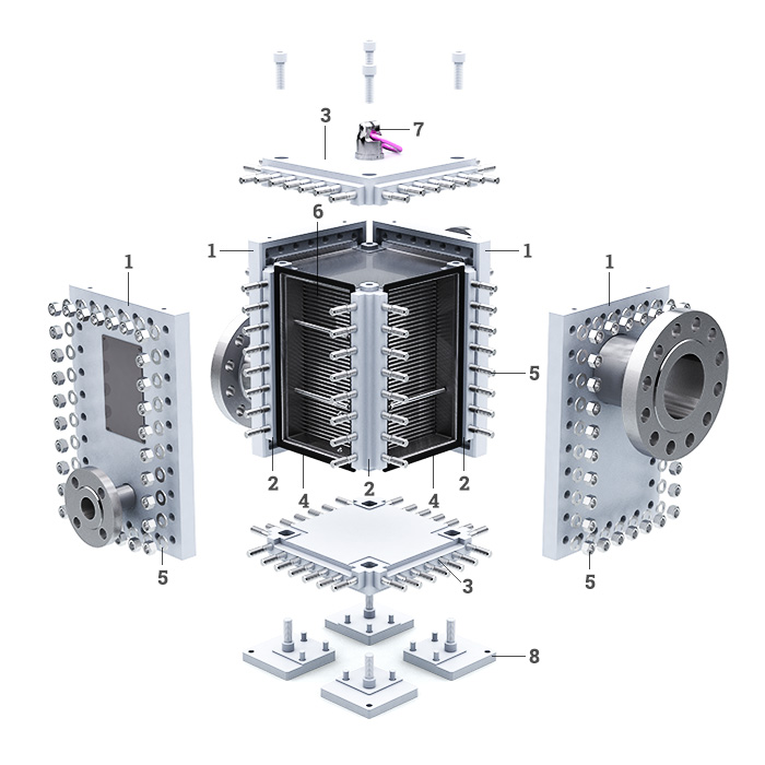 Благодаря компактной блочной конструкции аппарат можно вскрывать, осматривать и очищать даже в условиях крайне ограниченного пространства.