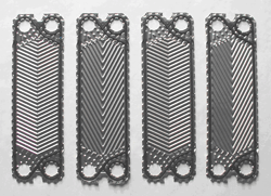 Off-Set пластины предлагаются с 4 различными типами профилей (G, H, K, L), которые отличаются между собой геометрией штамповки и углом наклона рельефа по отношению к направлению основного потока. За счет комбинирования данных пластин, представленных в 14 типоразмерах от 0,04 м2 до 2,5 м2, можно создать 9 различных каналов, что приведет к определенному компромиссу (в зависимости от среды) между расходом теплообменной среды, величиной теплопередачи и потерей давления. Таким образом, несмотря на ограниченный выбор пластин, теплообменник может быть оптимально подобран согласно теплотехническим требованиям любого конкретного проекта.